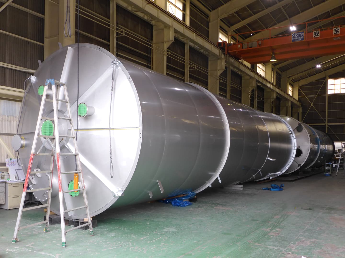 受注製品の9割以上が個別のオーダー品である現状において顧客の多様化・複雑化するニーズに迅速に対応するため「豊富なストック材料・充実した社内設備・経験豊富な技術者」と必要な環境を整えており、工場は大型トレーラーも搬入可能なため、大・小様々な製品の製作が可能です。